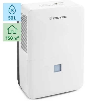The Trotec TTK 127 E is more than just a dehumidifier—it’s a smart climate control solution for your home or office. With a powerful dehumidification capacity of up to 50 litres per day, this unit efficiently tackles excessive moisture in large spaces up to 150 m². Its standout “comfort function” intelligently adjusts humidity levels to match the ambient temperature, ensuring a perfect, comfortable climate with the push of a button. Whether you’re a business looking for the best dehumidifier for big rooms in UAE to protect goods from spoilage, or simply seeking a healthier indoor environment, the TTK 127 E’s robust performance and user-friendly features make it an ideal choice. It offers continuous operation, a quiet Sleep Mode, and an integrated condensate pump for effortless water disposal, making it a powerful and convenient solution for any high-humidity environment, including those with low temperatures.